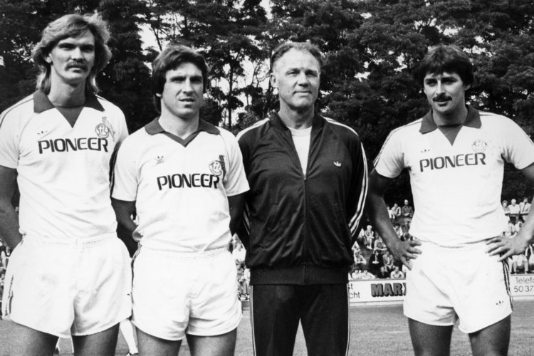 Rinus Michels (2.v.r), der niederländ ische Trainer des Fußball-Bu ndesligist en