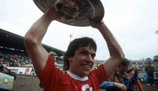 Datum: 08.06.1985  Copyright: imago/Kicker/Liedel Lothar Matthäus (Bayern) - Deutscher Meister 1985; FC Bayern München, Vdia, quer, close, Sieg, Sieger, Meisterschaft, Jubel, Schale, Meisterschale,